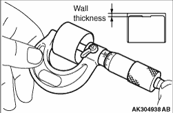 Remove the valve tappet and measure its thickness. (2)