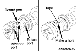 1.Seal with a tape all the intake camshaft ports for the advanced angle and the retarded