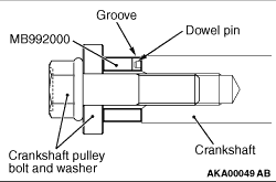 Set the special tool Crankshaft adapter (MB992000) to the crankshaft, and install the