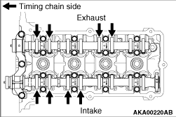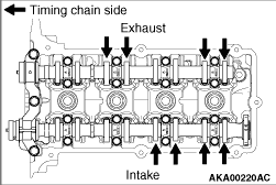 6.Measure the valve clearance at the location shown with an arrow. 7.If the measured value does not conform to the standard value, record the measured