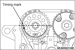 Rotate the crankshaft clockwise until the mark on the camshaft sprocket is aligned with