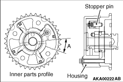 The stopper pin is locked in the most retarded angle position.