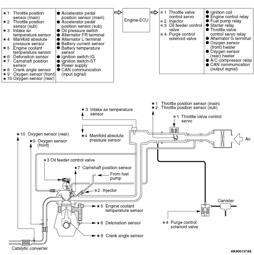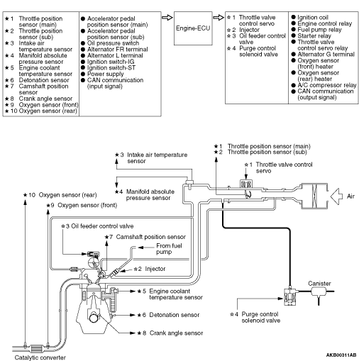 • When an abnormality is detected in one of the sensors or actuators, a diagnosis code corresponding to the abnormality is output.