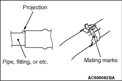 1.Make mating marks on the radiator hose and the hose clip as shown to install them in the