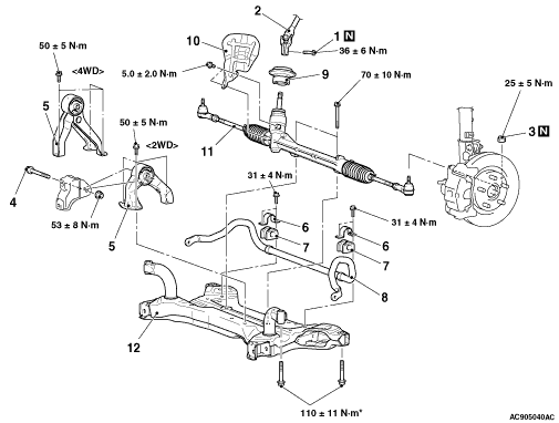 • The parts indicated by * are the bolts with friction coefficient stabilizer. In removal, ensure there is no damage, clean dust and soiling from the bearing and thread surfaces, and tighten them to the specified torque.