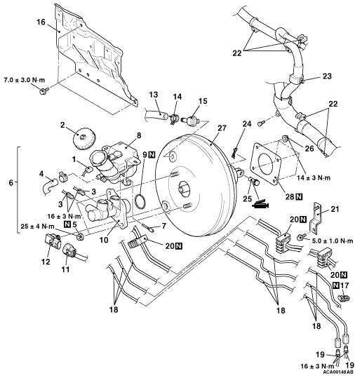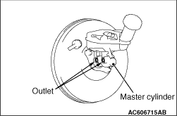 When removed the master cylinder assembly, bleed the master cylinder in the following procedure to make bleeding of the brake pipeline easier (When no brake fluid is in the master cylinder).