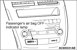5.Check that the passenger’s air bag OFF indicator lamp is illuminated for 6 to 8 seconds, and extinguished afterward.