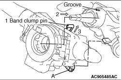 3.After mounting the column switch body by securely fitting the column switch body claw with the column shaft groove, release the band clump pin.