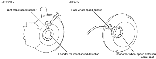 The front wheel speed sensor consists of the front wheel speed sensor mounted on the knuckle