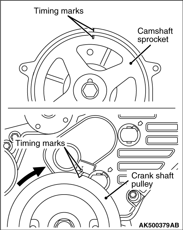 3.Align the timing marks on the sprockets with the timing mark on the front upper case.