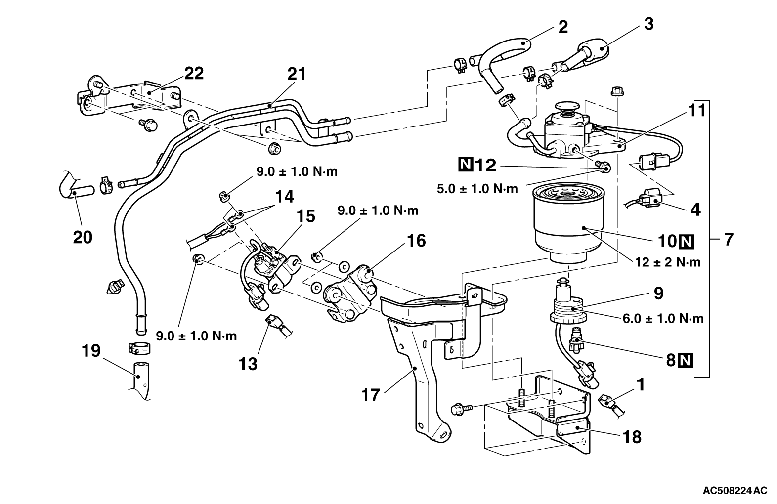 2.Tighten the fuel filter cartridge to the specified torque from the point where the gasket contacts the mounting surface.