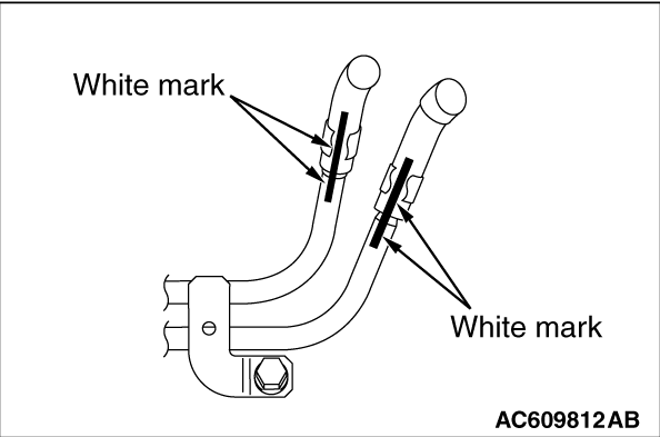 Insert each fuel return hose so that the white mark of each fuel return hose is aligned with the fuel return pipe assembly.