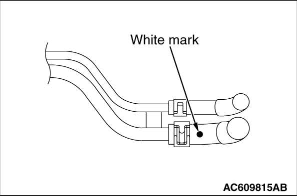 Insert the fuel hose B and fuel hose C so that the white mark of fuel hose is located as shown in the figure.