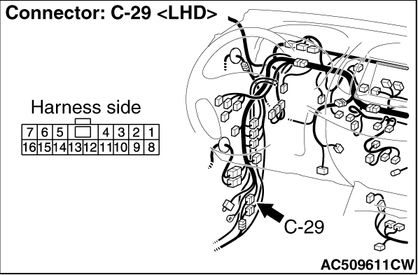 (3)Measure the voltage between A/T-ECU connector C-19 terminal No.9 and earth. OK: System voltage