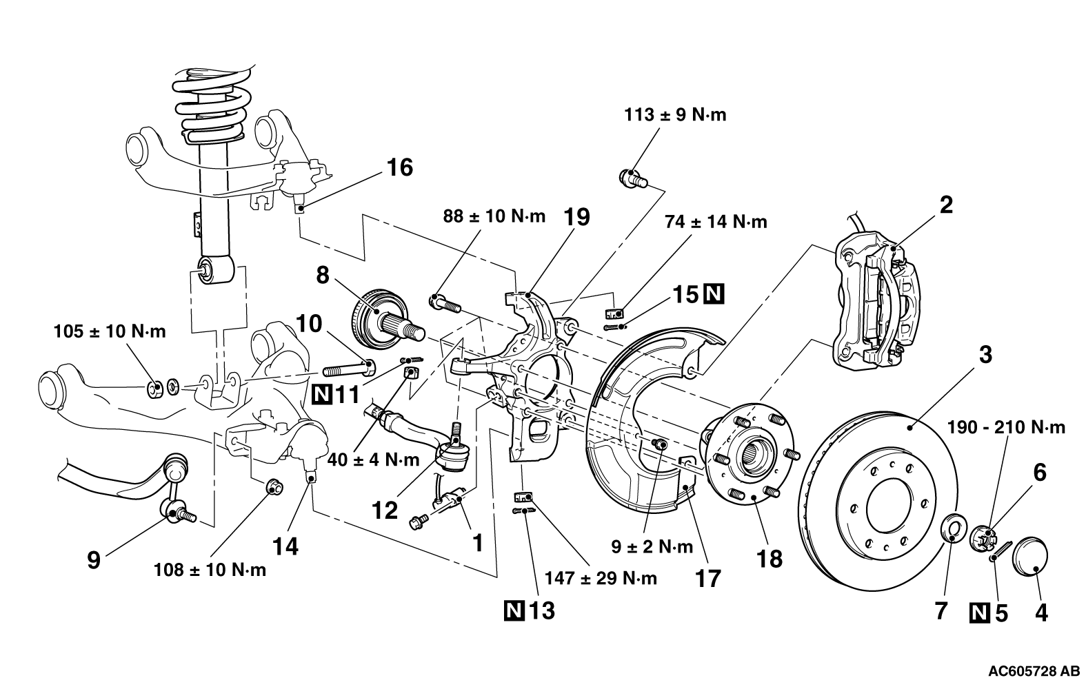 caution Do not apply pressure to wheel bearing by the vehicle weight to avoid possible damage when front hub nut is loosened.