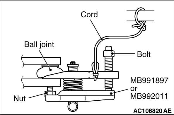 1.Install special tool ball joint remover (MB991897 or MB992011) as shown in the figure.