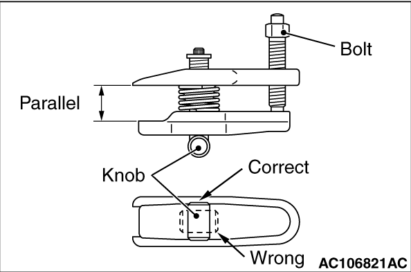 2.Turn the bolt and knob as necessary to make the jaws of special tool parallel, tighten the bolt by hand and confirm that the jaws are still parallel.