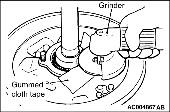 3.As shown in the figure, hold the axle shaft. Using a grinder, shave off a point of its circumference locally until the wall thickness become as follows: