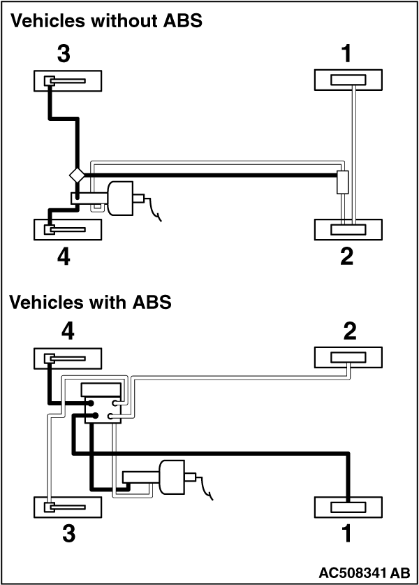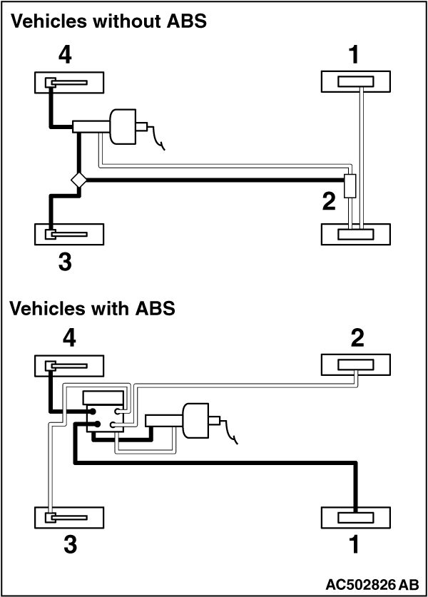 The master cylinder used has no check valve, so if bleeding is carried out by the following procedure, bleeding of air from the brake pipeline will become easier (When brake fluid is not contained in the master cylinder).