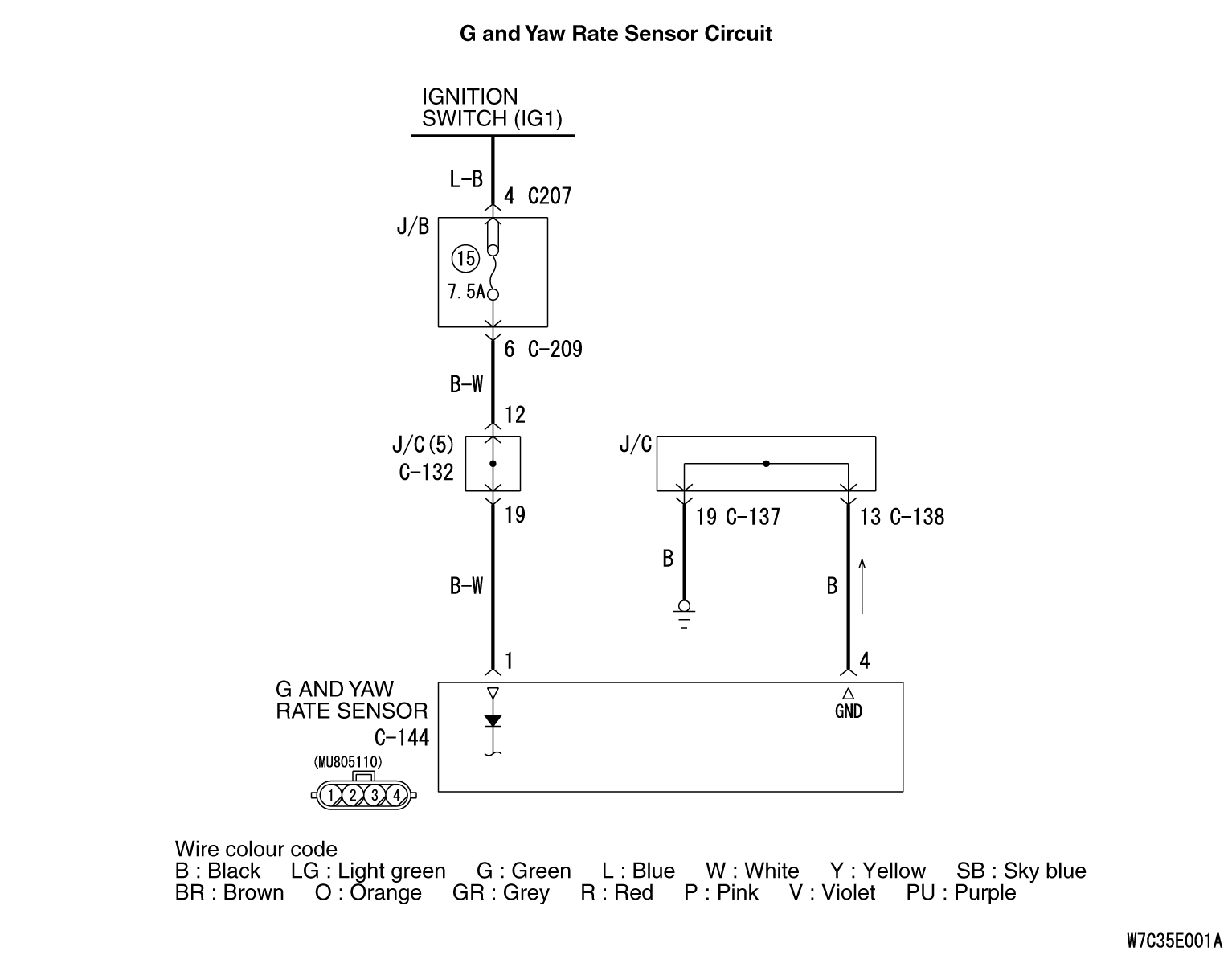 - The G and yaw rate sensor is energized by the ignition switch (IG1) and the G and yaw rate sensor terminal 1.