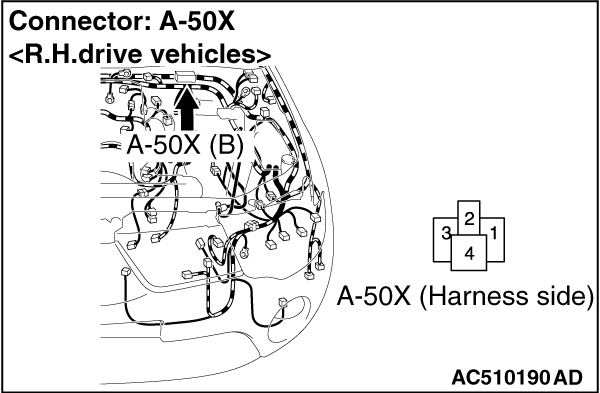 Before connecting or disconnecting the M.U.T.-III, turn the ignition switch to the "LOCK"
