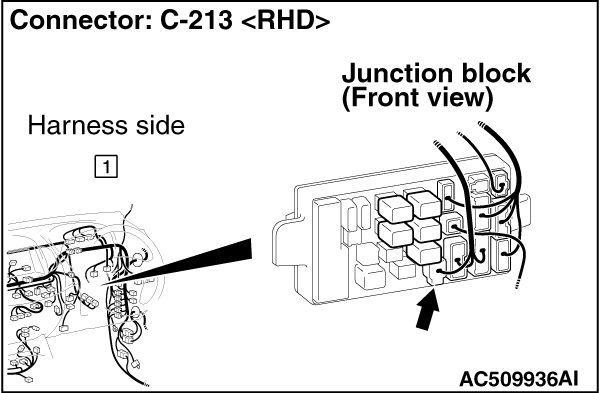 Prior to the wiring harness inspection, check junction block connector C-213, and repair