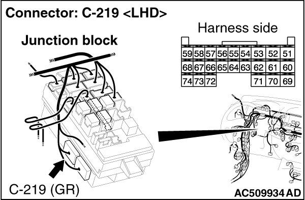 STEP 8. Connector check: C-219 ETACS-ECU connector, C-302 column switch connector