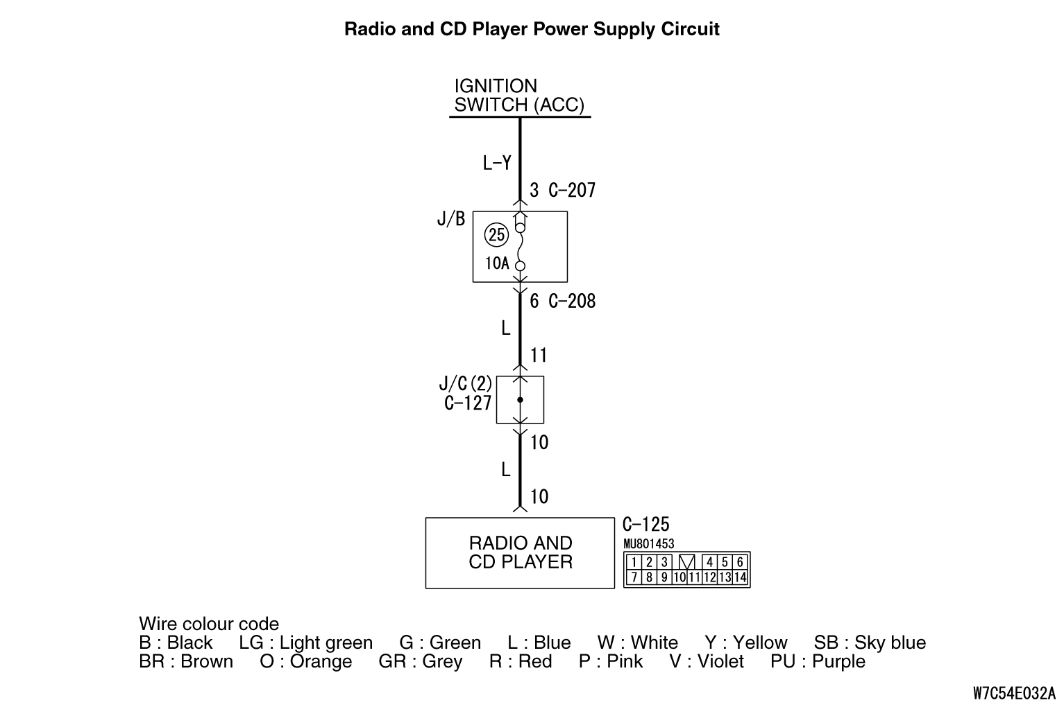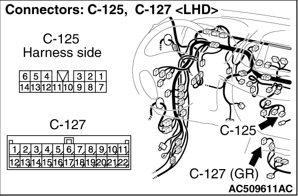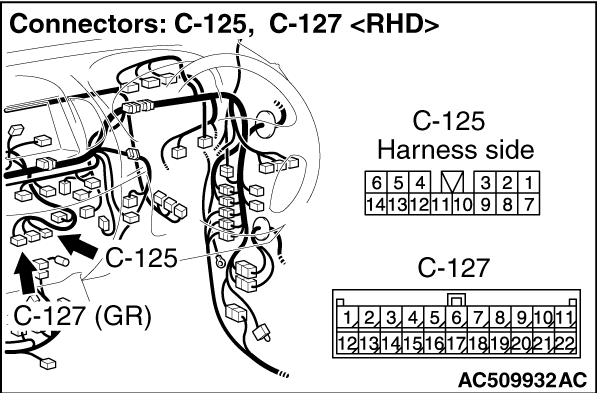 (1)Disconnect radio and CD player connector C-125, and measure at the wiring harness