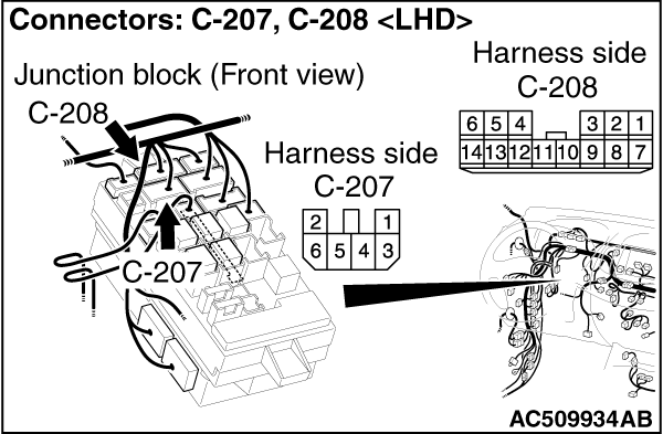 connectors C-207, C-208, and repair if necessary.