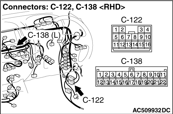 C-133 <L.H. drive vehicles> or C-122 <R.H. drive vehicles>, and repair if necessary.