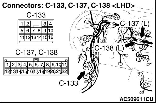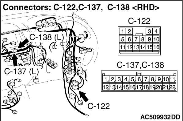 connector C-122 <L.H. drive vehicles> or C-133 <R.H. drive vehicles>, and repair if