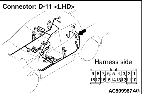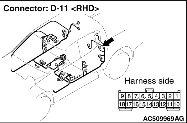 STEP 1. Connector check: C-219 ETACS-ECU connector, D-11 rear panel power window-ECU connector |