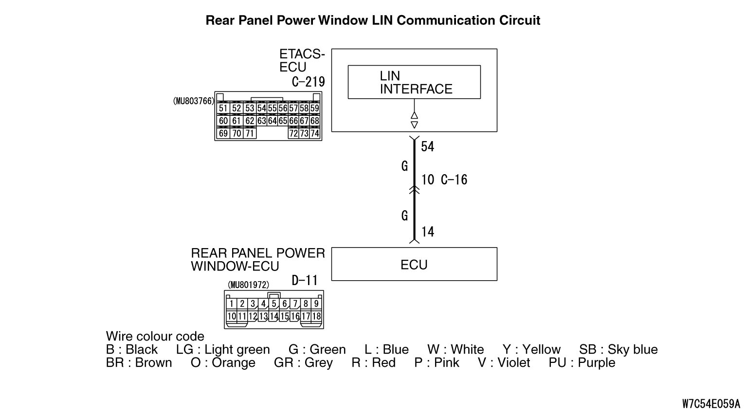 the LIN bus lines between the rear panel power window-ECU and the ETACS-ECU (Refer to GROUP