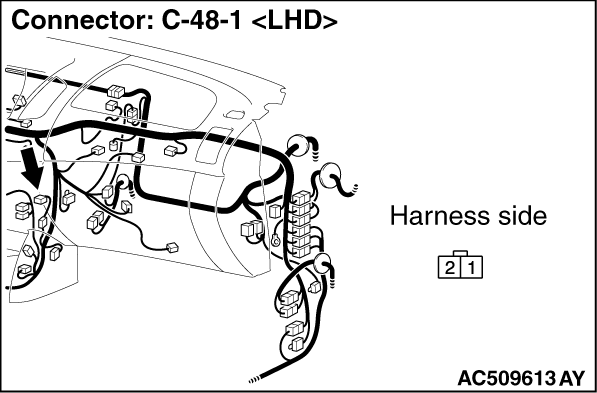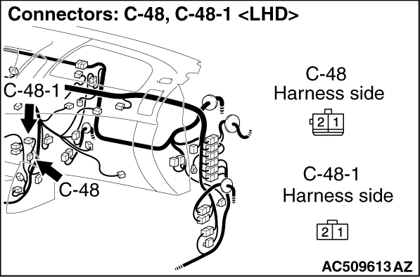 Prior to the wiring harness inspection, check intermediate connector C-48 and joint connector