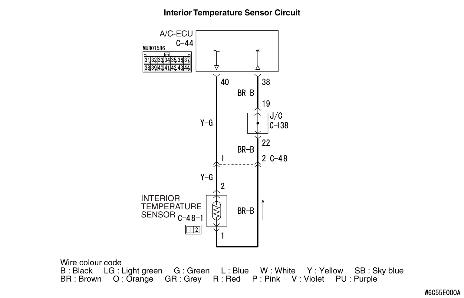 This code is set when the interior temperature sensor circuit is open (Code No.B1002)