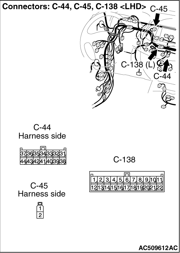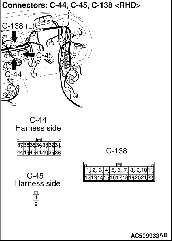 Prior to the wiring harness inspection, check joint connector C-138, and repair if necessary.