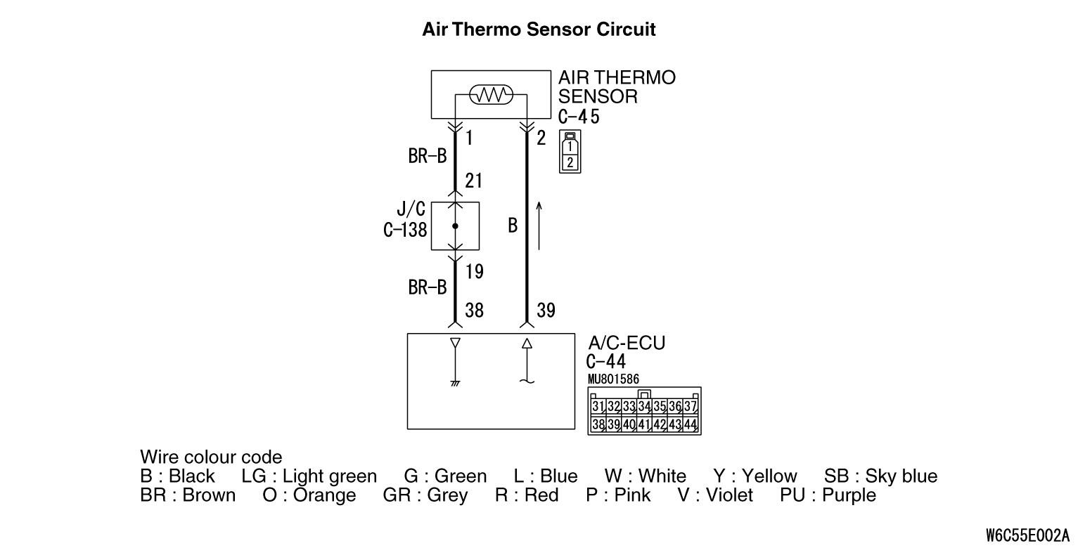 This code is set when the air thermo sensor circuit is open (Code No.B1022) or is short