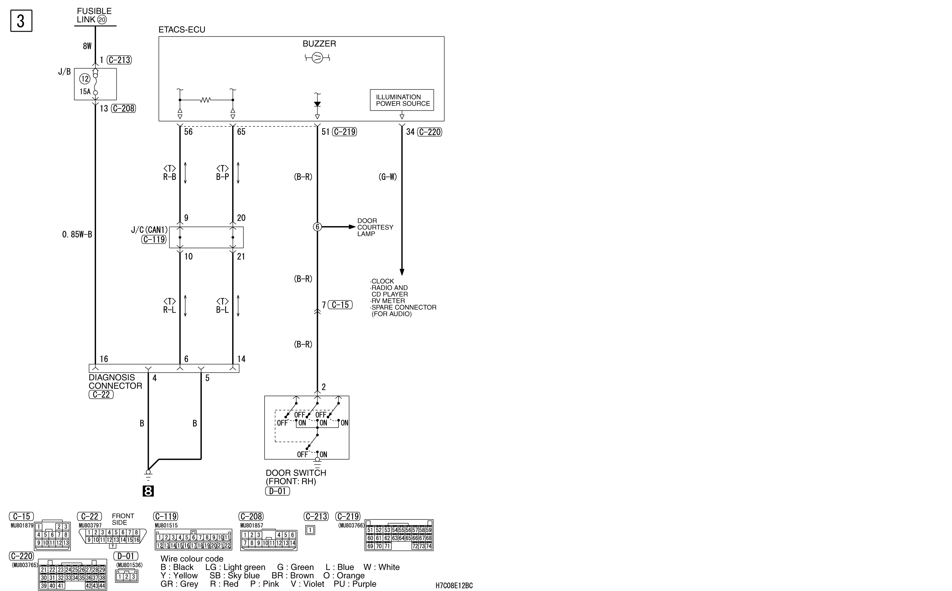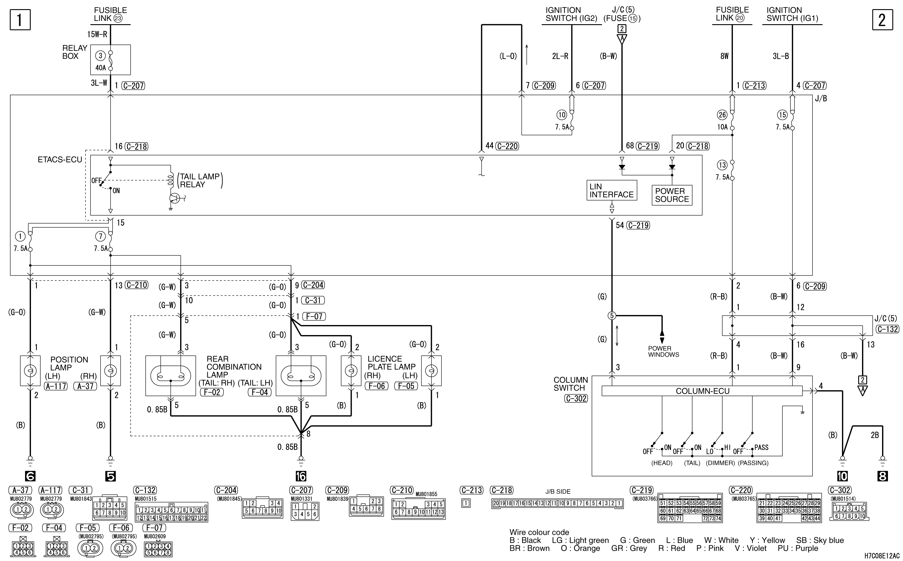TAIL LAMP, POSITION LAMP, LICENCE PLATE LAMP AND LIGHTING MONITOR BUZZER <RHD> (CONTINUED)