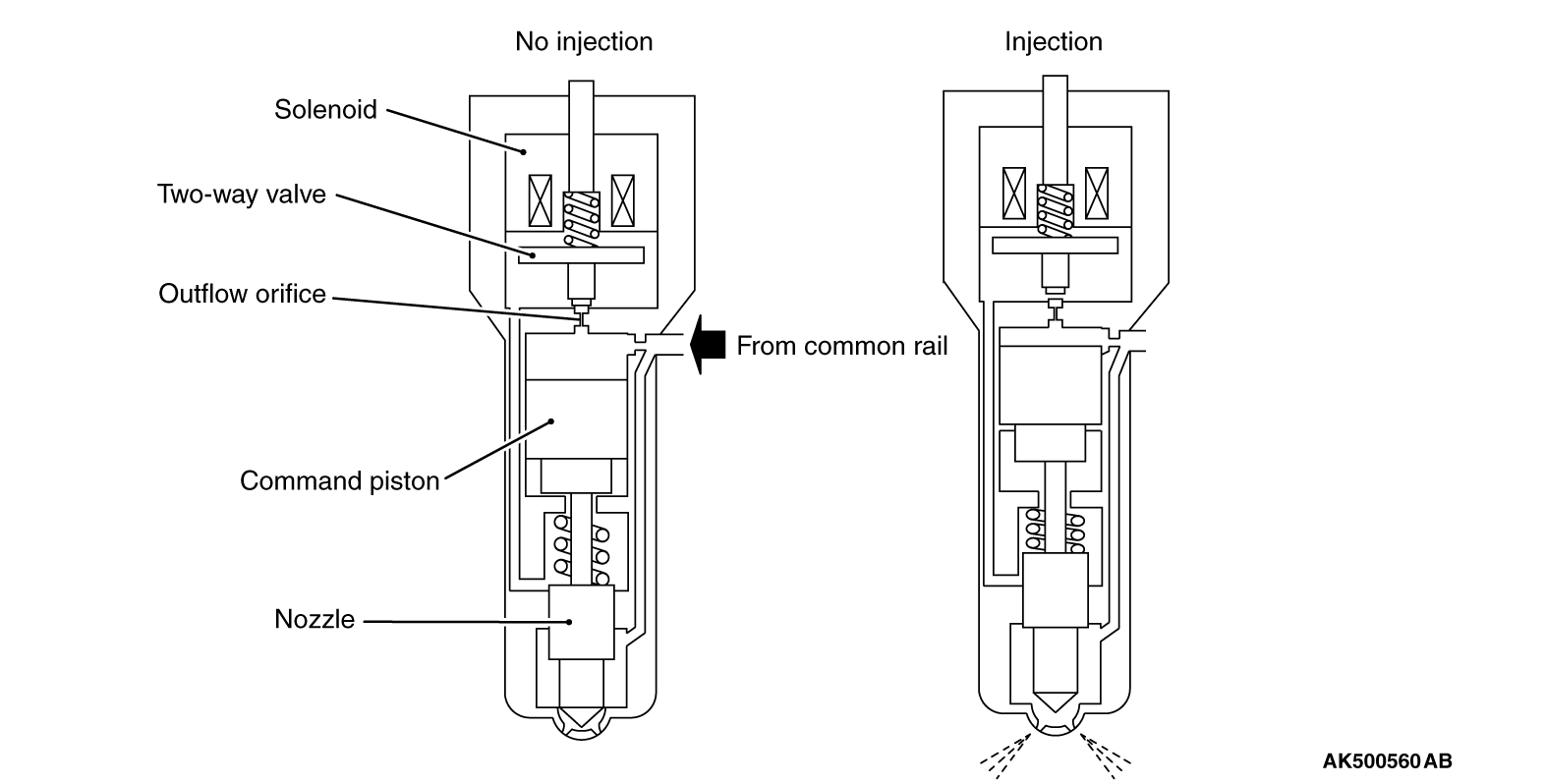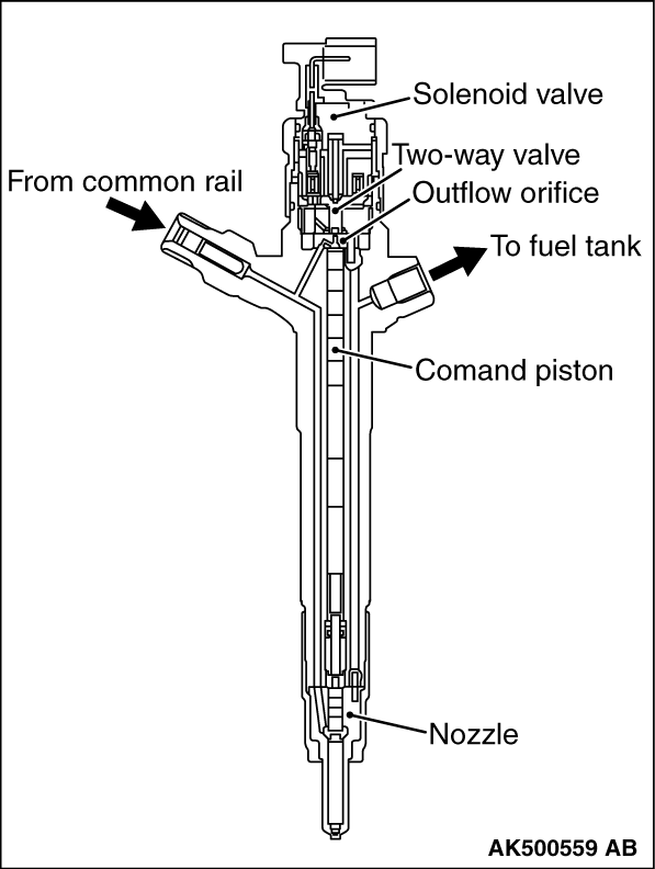 splits the injection of fuel into two stages, has been adopted. An injector consists of a nozzle, command piston, command chamber, and solenoid valve
