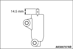 3.Measure the extension length of the rod. If it is not within the standard value range, replace the auto-tensioner. Standard value: 14.5 mm 4.Measure the amount of the retraction when the rod is pressed with the force of 100 -