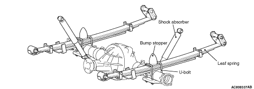 - The spring is fixed at the top to increase ground clearance of the leaf spring. <2WD