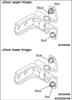 If the levelling of the door is difficult, replace the door-side hinge mounting bolts,