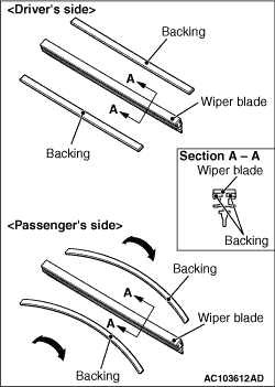caution For good windshield wiper wiping performance, use a driver’s side windshield wiper without curve in the backings of the wiper blade. The windshield wiper on the passenger’s side should be a wiper blade with curved backings.