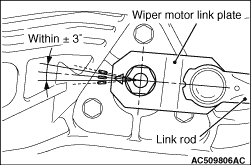 Set the wiper motor link plate onto the wiper motor shaft; aligning the plate to the windshield wiper link as shown in the illustration.