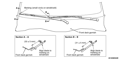 1.Confirm that the wiper motor has set to automatic stop position (refer to ).