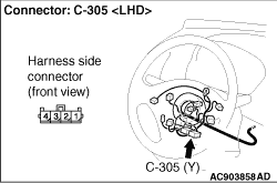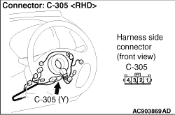 Insert special tool (MB991866) into clock spring harness side connector C-305 (terminal