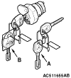 Steering lock service key set (A: without transmitter, B: with transmitter)