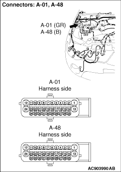 with ASTC> connector, and measure at the wiring harness side. (2)Turn the ignition switch to the LOCK (OFF) position. (3)