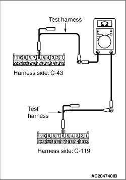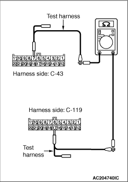 (5)Continuity between C-119 joint connector (CAN1) terminal No.17 and C-43 A/C-ECU