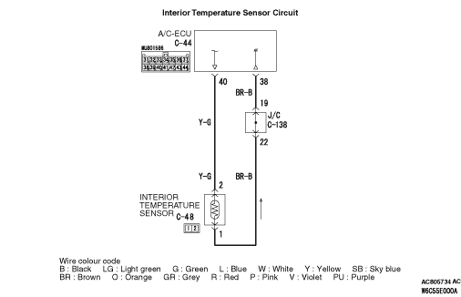 This code is set when the interior temperature sensor circuit is open (Code No.B1002)